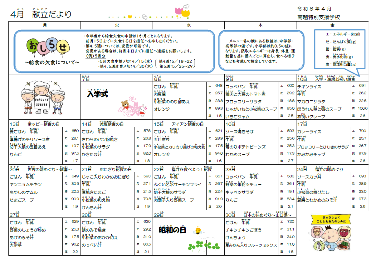 4月 献立だより